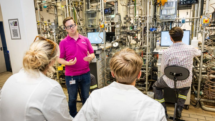 denn auf die richtige Führung des topmodernen Schweißgeräts kam es an. Es arbeitet ohne Funken und Hitze. Genauso beeindruckt waren die Teilnehmer von der Anwendungstechnik, durch die sie Kolleginnen und Kollegen führten. Wo Evonik-Produkte überall drin stecken und welchen Nutzen sie bringen, verriet die Reise durch die Wesselinger Evonik-Welt.